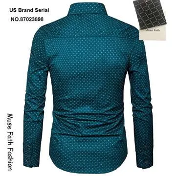 MUSE FATH Men’s Printed Dress Shirt-Cotton Casual Long Sleeve Shirt-Button Down Point Collar Shirt-Green-2XL