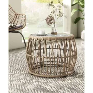 Show more Introducing the perfect blend of style and functionality, the Muse & Lounge Co. Ysar Boho Rattan Round Coffee Table. Crafted to effortlessly elevate your indoor or outdoor spaces, this table features a summer-vibe woven design that resonates with bohemian elegance. Whether you’re hosting a backyard gathering or enjoying a quiet evening on your patio, this coffee table provides the ideal centerpiece that speaks to both comfort and high aesthetic appeal.