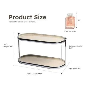 MUSEOWN 2 Tier Metal Frame Perfume Organizer in Stylish,and Minimalist Perfume Tray-Elegant Countertop Display Shelf for Skincare,Makeup,Trinket for Dresser,Vanity,Bathroom (Creamy White)