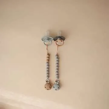 The Mushie Pacifier Clip does not compromise on functionality! Designed with a unique faux wood silicone clasp, it seamlessly blends aesthetics with purpose, ensuring that pacifiers stay securely attached whether you're out for a stroll or enjoying a cozy day at home. The thoughtfully designed length allows for easy attachment to clothing, strollers, or blankets without the fear of posing a choking hazard, giving parents peace of mind every time baby ventures forth.
