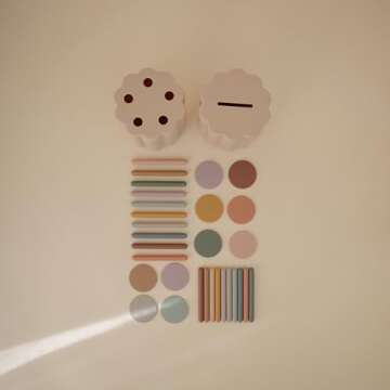 With its perfect size for tiny hands (each tube measures 4.37 x 4.37 x 5 inches), the Mushie Coin & Tube Sorting Set allows children aged 10 months and up to engage in sorting, matching, and counting activities. The soothing colour palette not only looks beautiful in your home, but it also provides a calming aesthetic for playtime. This Montessori-inspired toy is designed to captivate and educate, encouraging children to explore colors, shapes, and early problem-solving skills through hands-on interaction.