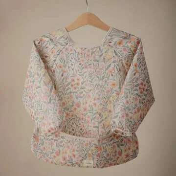 mushie Long Sleeve Baby Bib | Mess Free & Waterproof Fabric for Toddlers | Adjustable Fit for Ages 6-24 Months (Pastel Blooms)