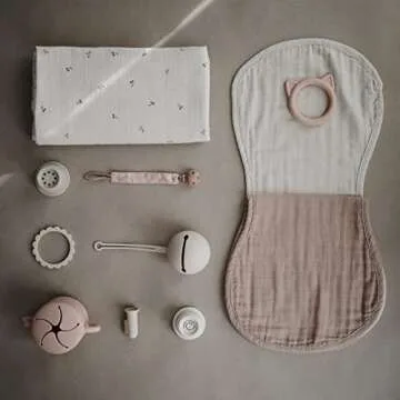 mushie Muslin Baby Burp Cloths | 100% Organic Cotton, Set of 2 (Blush/Fog)