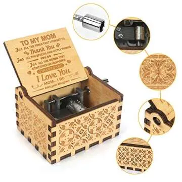 Why You Will Love This Product: This exquisite music box is more than just a delightful tune; it serves as a tangible representation of your feelings. Each time the music plays, it evokes memories and emotions, reminding loved ones of the bonds you cherish. Its charm and sentimentality encapsulate the essence of gifting, ensuring it becomes a treasured keepsake for years to come.