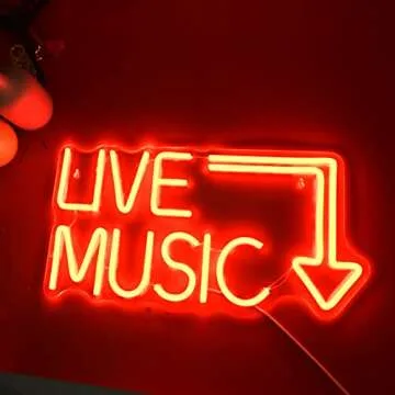 Music Live Led Neon Signs - Handcrafted Led Signs 17 * 11 inches - Wall Decor Led Light For Nightclub,Bar or Bedroom,Music Stadio