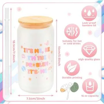 Music Lover Merch Gifts Cup - Glass Jars 16oz Frosted Wide Mouth Smoothie Cups with Bamboo Lids and Straws, Birthday Stuff Gifts for Girls or Singer Fans