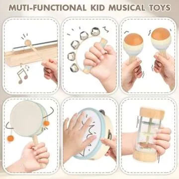 Show more Discover the enchanting world of music with our exquisite toddler musical instrument set! Designed for children aged 12-36 months, this set is an embodiment of creativity, safety, and joy. Crafted from eco-friendly, durable materials, each instrument allows your little one to explore sounds while ensuring a secure play environment. Our set includes a **hand drum, hand bells, maracas, tambourine, wood sounder, clarinet,** and **rainmaker**, all professionally tuned to create soothing melodies that are pleasant to the ears.