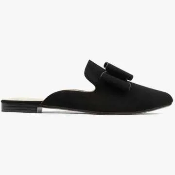 MUSSHOE Mules for Women Comfortable Pointed Toe Backless Slip-on Slides Loafer Flats with Bowknot,Black 9