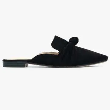 MUSSHOE Mules for Women Comfortable Pointed Toe Backless Slip-on Slides Loafer Flats with Knot,Black 9.5
