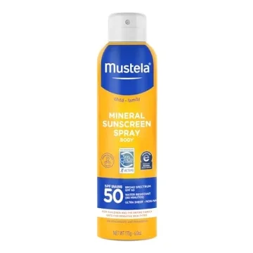 Show more Introducing the Mustela Baby Mineral Sunscreen Spray SPF 50, an exceptional companion for all your sun-soaked adventures! This broad-spectrum sunblock is expertly formulated for delicate skin, ensuring that both your little ones and you are shielded from harmful UVA and UVB rays. With its lightweight texture and innovative non-nano zinc formulation, this sunscreen offers an impressive level of water resistance, remaining effective for up to 80 minutes, making it perfect for beach days, poolside fun, or any sunny outdoor activity.