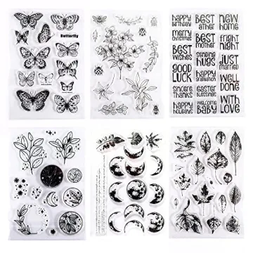 Muulaii 6 Sheets Clear Stamp Silicone Stamp Cards bring the joyous spirit of the festive season into your creative projects. Featuring an array of delicate designs including greeting words, flowers, leaves, butterflies, and enchanting moons, these stamps allow you to craft beautiful holiday cards, scrapbooks, and other paper crafts with ease. Made from high-quality silicone, these stamps promise durability and flexibility, making your craft time both enjoyable and worry-free.