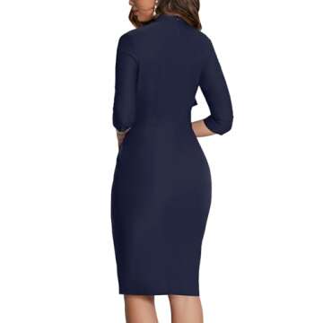 MUXXN Women's 3/4 Sleeve Knee Length Office Casual Mock Collar Pencil Dresses Navy Blue XL