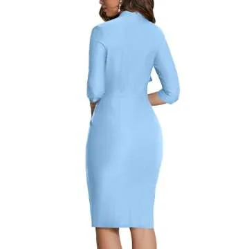 MUXXN Women's Lady Vintage 3/4 Sleeve Semi Formal Business Office Slim Pencil Dress with Pockets Airy Blue XXL