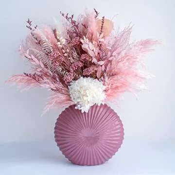 MUYEJI Natural Dried Pampas Grass Bouquet, Pink Flower Arrangements, Boho Home Decor Bouquet, Fluffy Pompas Grass Decor, Dried Floral Arrangement for Home Wedding Table Centerpiece Decorations