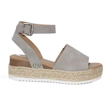 MVE Shoes Womens Sandals Slip On Flatform With Inmitation Cork Bottom Double Straps