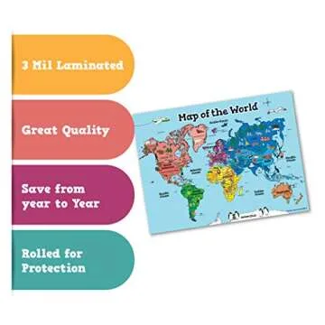 MWB World Map Wall Art Poster for Kids - Educational Map Posters for Kids includes Countries, States, Capitals & Pictures | Perfect for Classroom Decor or Home | 18" x 24" Laminated Durable Poster