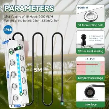 Crafted from durable 304 stainless steel and equipped with a 400W waterproof transformer, it operates seamlessly, ensuring long-lasting performance and efficiency. The unit includes a buoy for optimal positioning in deeper water scenarios, allowing you to customize your mist creation effortlessly. This reliable mist maker operates quietly at a frequency of 1.7MHz, making it perfect for tranquil environments.