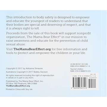 Parents, educators, and pediatric professionals highly recommend this book for its effectiveness in simplifying complex topics into accessible language. Children as young as two years old can begin their journey on understanding these critical issues while developing a healthy sense of awareness and boundary-setting. Participate actively in your child's learning process with this incredible tool that shapes not only their knowledge but also their perspective on personal safety.
