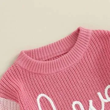 My First Valentines Day Baby Girl Outfit Baby Valentines Day Sweater Love Embroidery Knit Pullover Sweatshirt Top(C-Pink,12-18 Months)
