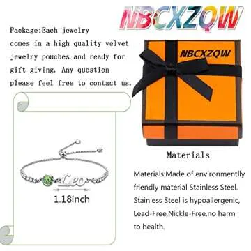 My Pet Elephant 12 Constellations Charm Bracelet with Birthstone Constellation Jewelry Zodiac Sign Gift Astrology Jewelry Birthday Gift (Leo Br)