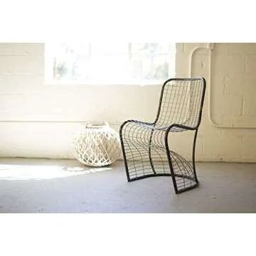 MY SWANKY HOME 33 Inch Modern Industrial Woven Grid Metal Accent Chair Curved Minimalist