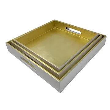 Show moreIntroducing the **MY SWANKY HOME Sturdy Gold White Lacquer Serving Tray Set**, a stunning trio of trays that are both functional and elegant. Crafted from high-quality MDF wood and finished with a rich lacquer, these trays exhibit a glossy sheen that adds a touch of sophistication to any setting. This set includes three sizes - Large (12.75" square), Medium (11.75" square), and Small (10.75" square) - providing versatility for serving snacks, displaying decorative items, or organizing your essentials. Each tray stands 2" high, with a compact height of 2.75" when fully nested, making them easy to store when not in use.