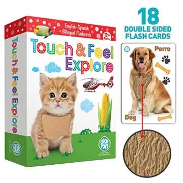 My Touch and Feel English Spanish Bilingual Picture Double Sided Sensory Flash Cards for Infant, Toddlers, Kids, Learn Animals, Fruits, Objects and Vehicles, Fun Learning and Educational Flashcards