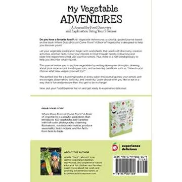 Show moreStep into the vibrant world of flavors, colors, and textures with My Vegetable Adventures: A Journal for Food Discovery and Exploration Using Your 5 Senses. This engaging journal encourages children to embark on a culinary journey, connecting them deeply with the food they eat and the environment around them. Designed as a part of the "Growing Adventurous Eaters" initiative, it empowers young readers to explore vegetables through the senses of sight, smell, touch, taste, and sound. Whether they're journaling about their backyard discoveries or vegetables from the local farmers' market, this journal is perfect for sparking curiosity and developing palate-rich experiences.