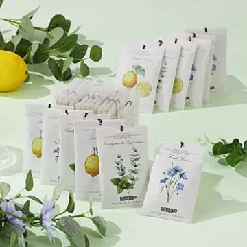 ... Show more Welcome to the refreshing world of MYARO Home Fragrance Sachets, a delightful way to enhance your living spaces with soothing aromas. Each sachet is not only a treat for your senses, but also a powerhouse of freshness, crafted from natural vermiculite and premium French essential oils. With three engaging scents – Fresh Linen, Eucalyptus Peppermint, and Lemon – these sachets offer an aromatic delight that lasts over 45 days, making them an essential addition to your home.