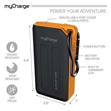 myCharge Adventure Camping Portable Charger Power Bank 6700 mAh Rugged Outdoor External Battery Pack with Carabiner Clip - USB Accessories, Bluetooth Speaker, Cell Phone (iPhone, Android for Samsung)