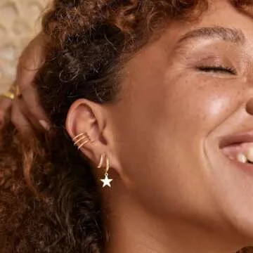 MYEARS Women Ear Cuff Earring Gold Non Pierced Ear Cartilage 3 Split Stripe Band Clip on Wrap Hoop 14K Gold Filled Tiny Boho Simple Minimalist Delicate Handmade Hypoallergenic Geometric Jewelry Gift