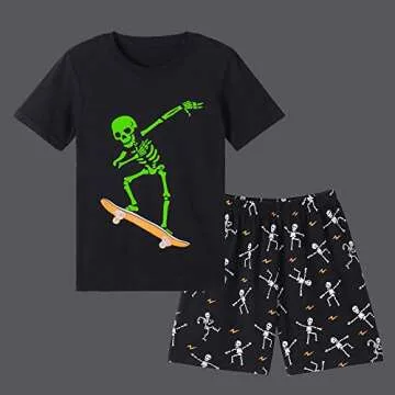 MyFav Big Boys Glow in Dark Skull Pjs Sleepwear Summer Pajama Shorts Sets, Skateboard, 8 Years