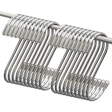 Show moreIntroducing the Myfolrena 20 Pack S Hooks for Hanging, your ultimate solution for space-saving organization! These 3.4-inch metal S-shaped hooks are sturdy, versatile, and designed to enhance your storage efficiency, whether in the kitchen, garage, or any area in your home. Made from durable stainless steel, each hook is built to hold up to 22 lbs with ease. Featuring unique silicone rubber caps on both ends, these hooks protect your belongings from scratches and ensure that items stay securely in place no matter the weight or usage. With 20 hooks included in each pack, you’ll have all you need to declutter and organize your space without drilling holes or complicated installations.