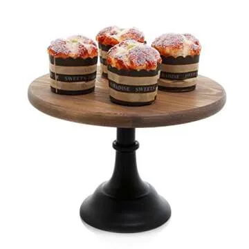 with high-quality wood and metal, this cake stand boasts a sturdy