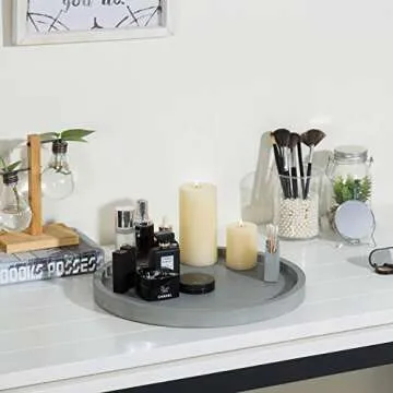MyGift 16 Inch Round Vanity Tray, Concrete Decorative Bathroom Cosmetic Perfume Jewelry Display Storage Tray