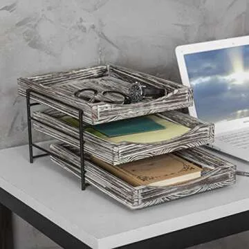 When compared to similar desk organizers on the market, the MyGift 3-Tier Rustic Torched Wood Desk Organizer stands out due to its rugged yet stylish design. Many competitors often feature plastic components that lack the durability and aesthetic touch this organizer offers. With its chic blend of wood and metal, this product combines functionality with an attractive look, making it a worthy addition to any office space. Additionally, the sliding trays provide superior convenience compared to static versions from other brands, allowing for easy accessibility to your materials.