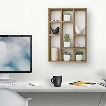 MyGift 9 Compartment Natural Paulownia Solid Wood Shadow Box, Wall Mountable Curio Display Case, Freestanding or Floating Shelf for Collectible Figurines, Succulents