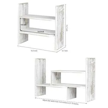 MyGift Adjustable Whitewashed Solid Wood Desktop Storage Organizer Display Shelf Book Rack, Office Desk Bookshelf