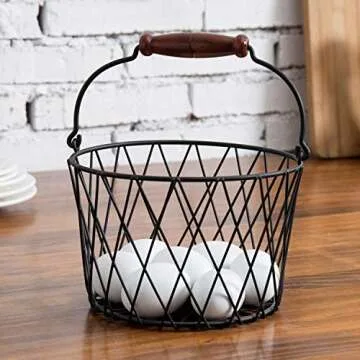 In comparison to other egg baskets on the market, the MyGift Matte Black Metal Egg Basket stands out with its elegant matte finish and sturdy wooden handle. Many competitors lack both the aesthetic appeal and robust functionality that this basket offers. While some alternatives may use flimsy materials, our wire construction ensures durability and longevity. Customers appreciate the thoughtful combination of style and practicality, making this basket a top choice among multipurpose kitchen storage options.