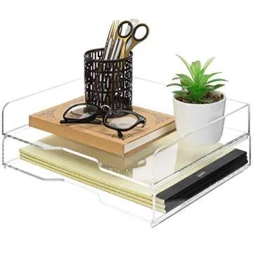 MyGift Premium Clear Acrylic Stackable Office Desk Paper Tray Document Letter Sorter, Desktop File Folder Mail Stationery Storage Organizer Stacking Rack, Set of 2