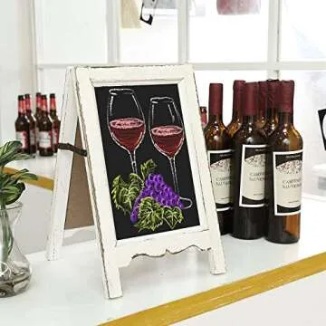 MyGift Small Wood A-Frame Double-Sided Chalkboard Sign, Whitewashed Table Top Rustic Message Board