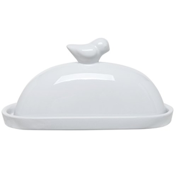 Charming MyGift White Ceramic Butter Dish with Bird Design Lid