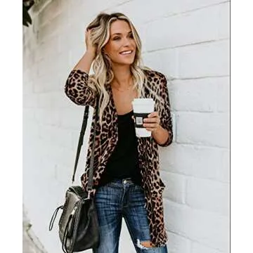 MYIFU Women's Leopard Print Sweater Cardigan Button Down Open Front Lightweight Shirt Outerwear with Pockets (Leopard, Small)