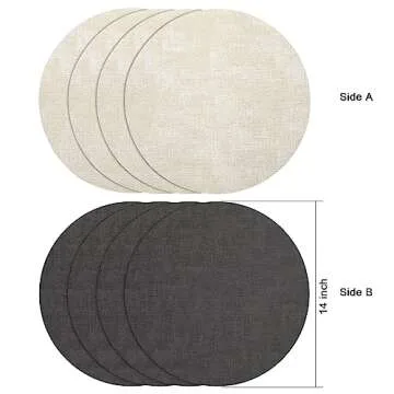 Myir JUN Round Placemats Dual Sided, Faux Leather Place Mats Set of 6 Indoor Placemats for Dining Table Outdoor Placemats Non-Slip Washable Table Mats (Gray Cream-White, Set of 6)