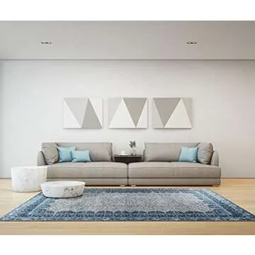 Mylife Rugs Traditional Vintage Non Slip Machine Washable Printed Area Rug, Blue Grey 4'x6'