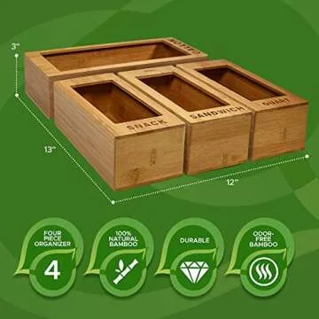 Mylo's Home Bamboo Ziplock Bag Organizer for Drawer - Plastic Bag Organizer for Drawer - Baggie Organizer for Drawer - Storage Bag Organizer Kitchen Drawer - Sandwich Bag Organizer for Drawer