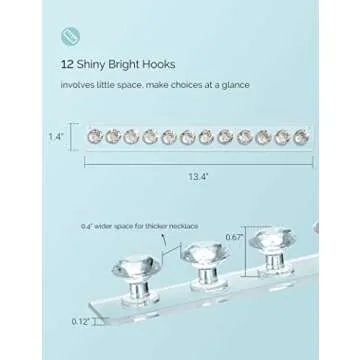 Mymazn 2 Pack Acrylic Necklaces Holder Hanging Jewelry Organizer Wall Mounted Necklace Hangers with 12 Hooks, Clear Jewelry Hangers for Necklace Organizer for Girls Women, Necklace Hooks for Wall