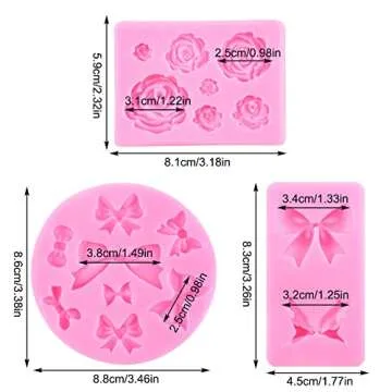 Show moreTransform Your Baking Experience with the MYPRACS Bows Silicone Fondant Molds! This delightful set of 3 molds is crafted from 100% food-grade silicone, ensuring safety and convenience in all your culinary endeavors. Each mold in this collection includes a gorgeous bow mold, an intricate bowknot mold, and a lovely rose flower mold, bringing a charming touch to your homemade cakes, cupcakes, and desserts. Whether you wish to shape fondant, chocolate, or even clay, these flexible and non-stick molds make it incredibly easy to create beautiful decorations that will impress your guests and elevate any dessert. With their unique designs and 3D effects, they are perfect for any occasion, helping you unleash your creativity like never before!