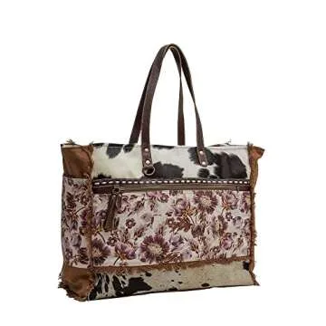 Myra Bag Western Leather Weekender Bag for Women - Cotton & Upcycled Canvas Boho Shoulder Bag Sempire
