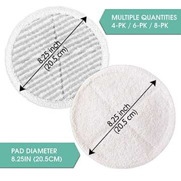 Show moreIntroducing the **MYSA Products 8-Pack Replacement Pads for Bissell Spinwave**, crafted to enhance your cleaning experience with high-quality, durable materials that promise longevity and effectiveness. These pads are specifically designed for compatibility with Bissell Spinwave Models 2039A, 2307, and 2315, ensuring a perfect fit for optimal performance. With a diameter of 8.3 inches (21 cm), the pads mirror the specifications of Bissell Replacement Pads (Part Number 2124), providing a seamless transition for user convenience. Made from premium microfiber, they effectively tackle dirt and grime while being gentle on your floors, guaranteeing a clean shine every time you use them.
